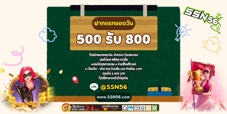 * เงื่อนไข: -ฝาก 500 รับเพิ่ม 300 ทำเทิร์น 3 เท่า ถอนได้ 2,400 บาท