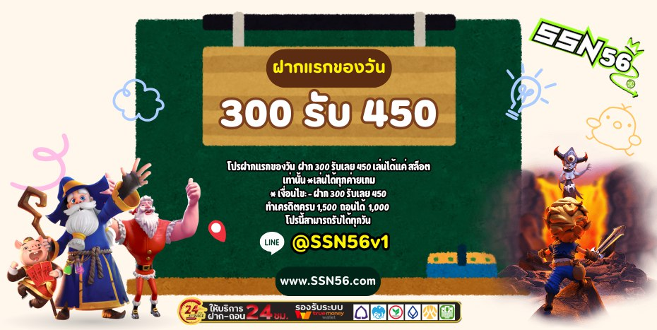 * เงื่อนไข: - ฝาก 300 รับเลย 450 ทำเครดิตครบ 1,500 ถอนได้ 1,000